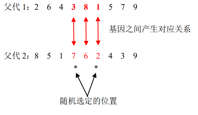 艾博士:该方法与二进制编码中的双亲双子法有些类似,是为了满足旅行商问题的约束条件而设计的一种整数编码条件下的交叉操作方法。设有双亲1和双亲2,交叉后产生后代1和后代2。随机选取一个交叉位,后代1交叉位之前的基因选自双亲1交叉位之前的基因,这一点与二进制编码中的双亲双子法是一样的。但是交叉位之后的基因选取与双亲双子法就不太一样了,而是从双亲2中从左到右按顺序选取那些在后代1中还没有出现过的基因。例如下面的例子: