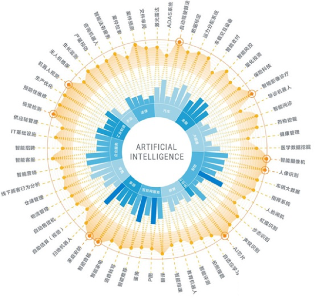 图1:人工智能在各个领域商业化程度与技术应用深度(2019人工智能行业研究报告)