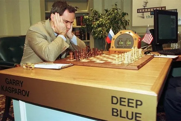 1996年,正值人工智能诞生40周年之际,一场举世瞩目的国际象棋大战在深蓝与卡斯帕罗夫之间举行,可惜当时的深蓝功夫欠佳,以2:4的比分败下阵来。1997年,经过改进的深蓝再战卡斯帕罗夫,这次深蓝不负众望,终于以3.5:2.5的比分战胜卡斯帕罗夫,可以说是人工智能发展史上的一个里程碑事件。