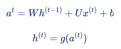 具体来说,如果t-1时刻状态单元的状态为 h^(t-1) ,在t时刻输入单词是 x^(1) ,则状态单元更新后得到新的状态h^(t) ,更新的规则如下: