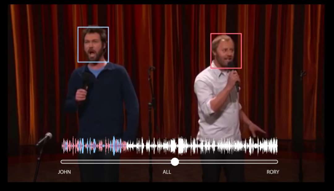 图2:Google的Looking to Listen系统,通过发音人的口唇分离混合发音[2,3]。